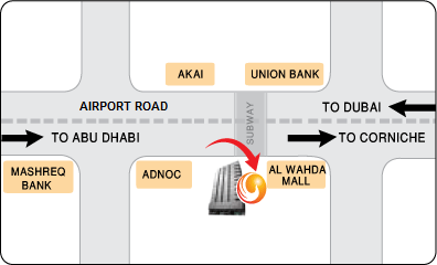 Those who come from Abu Dhabi side (Corniche road, Hamdan Street.etc, take left turn from Al Wahda signal to Dubai, down the road, take U turn from the next signal, just after Adnoc petrol Station on the right hand side.